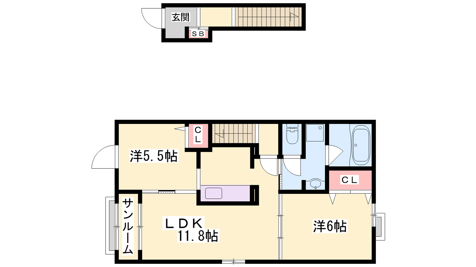 - LDK11.8帖、洋室6帖、洋室5.5帖