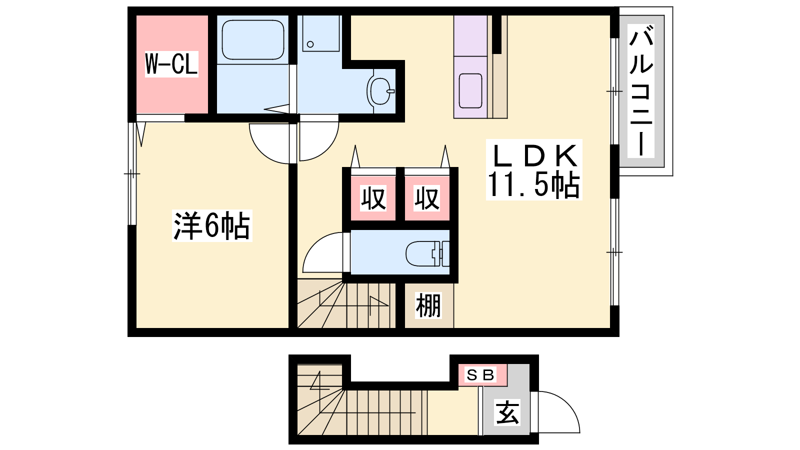 - LDK11.5帖、洋室6帖