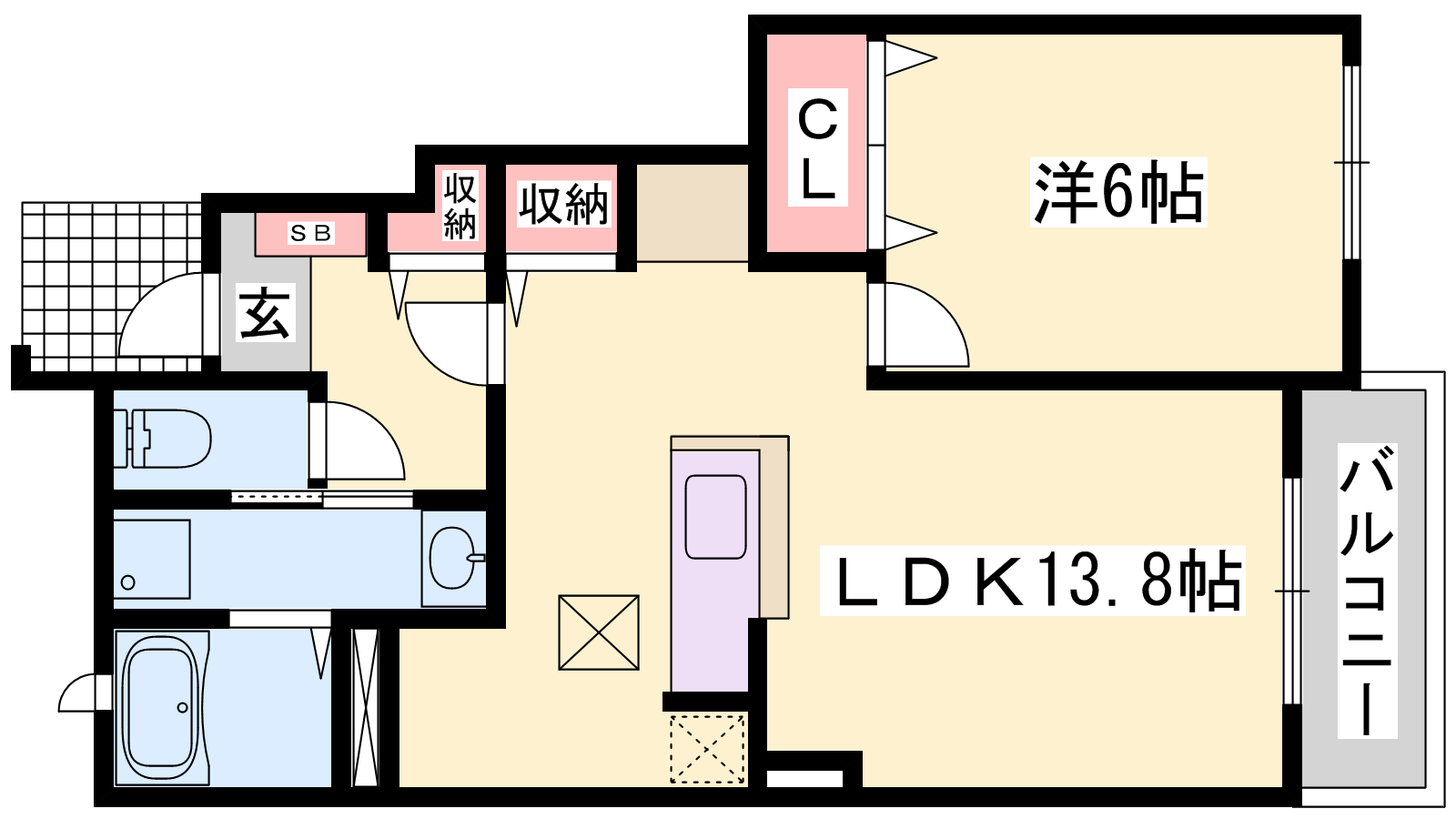 - LDK13.8帖、洋室6帖
