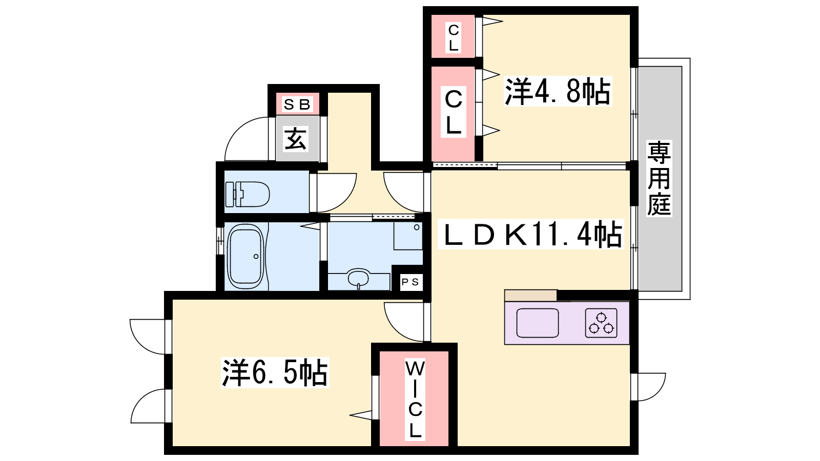 - LDK11.4帖、洋室6.5帖、洋室4.8帖