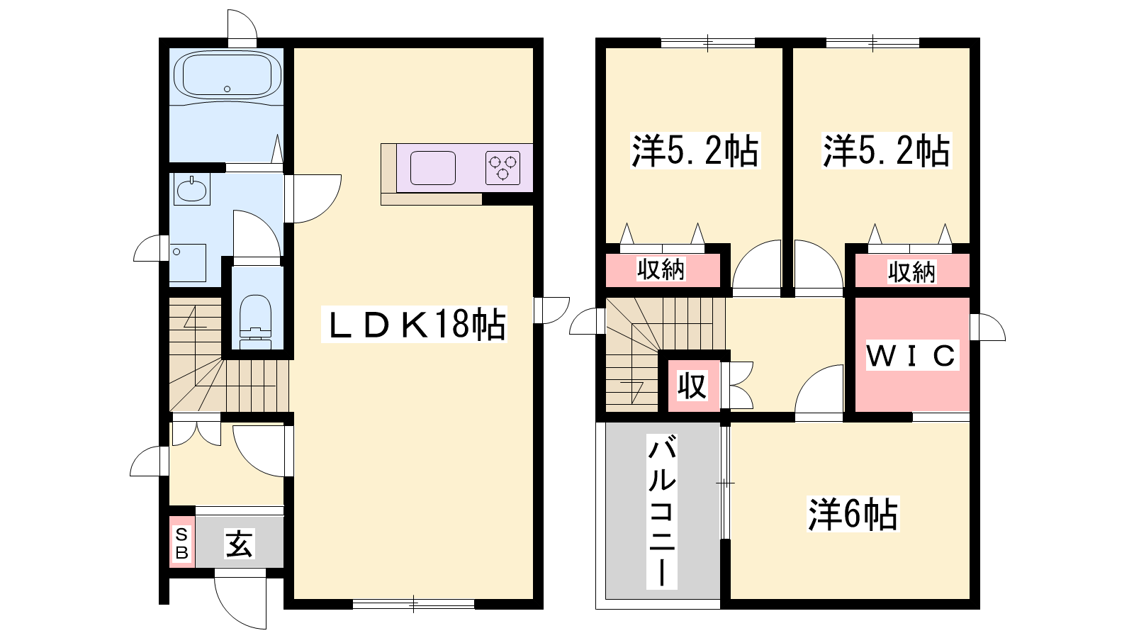 - LDK18帖、洋室6帖、洋室5.2帖、洋室5.2帖