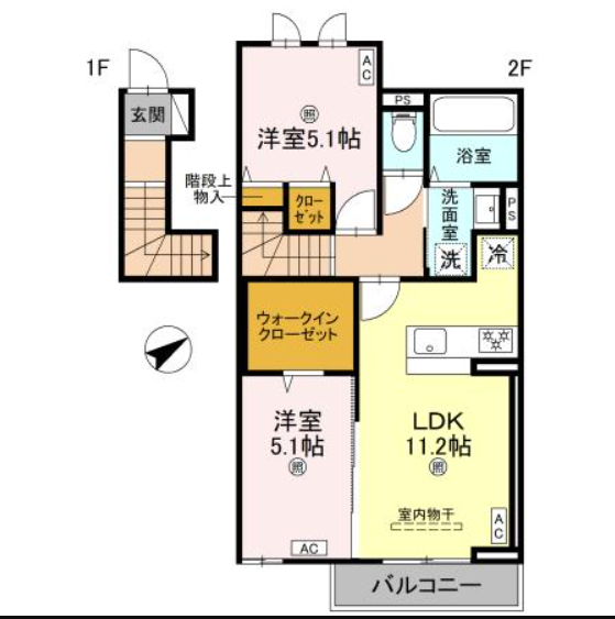 - LDK11.2帖、洋室5.1帖、洋室5.1帖