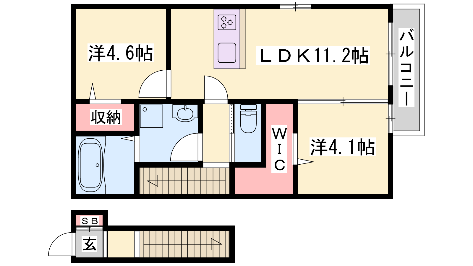 - LDK11.2帖、洋室4.6帖、洋室4.1帖