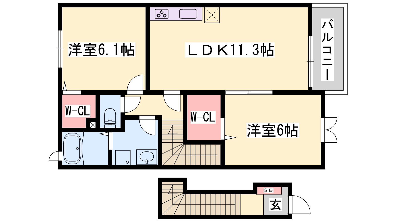 - LDK11.3帖、洋室6帖、洋室6.1帖