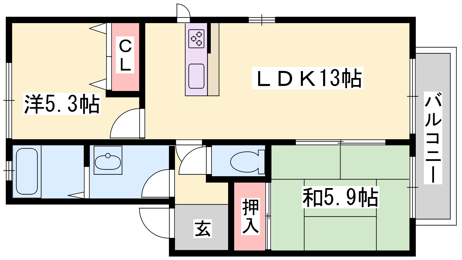 - LDK13帖、洋室5.3帖、和室5.9帖