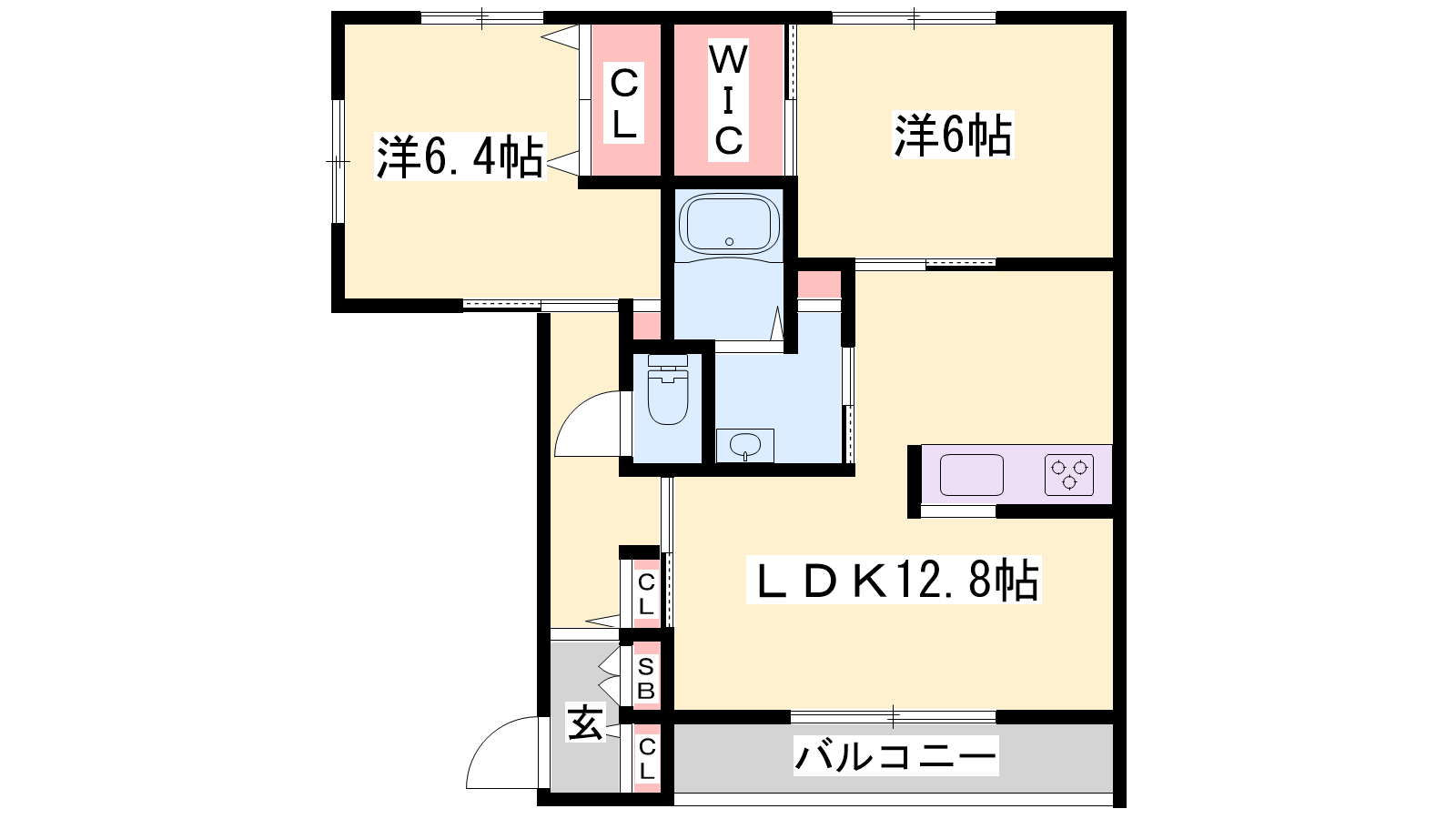 - LDK12.8帖、洋室6.4帖、洋室6帖