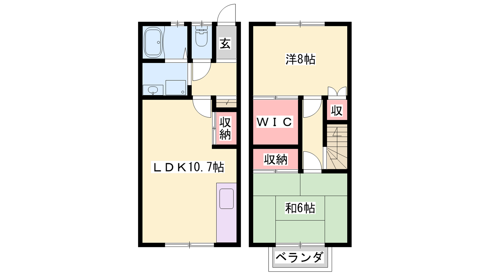 - LDK10.7帖、洋室6帖、和室6帖