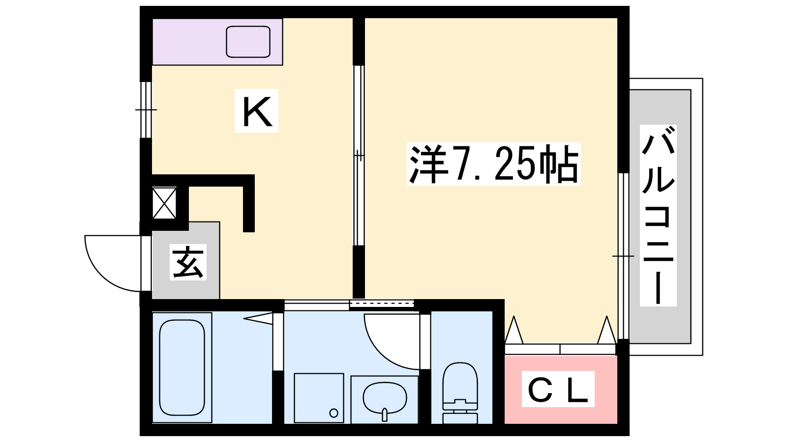 - K3帖、洋室7.25帖