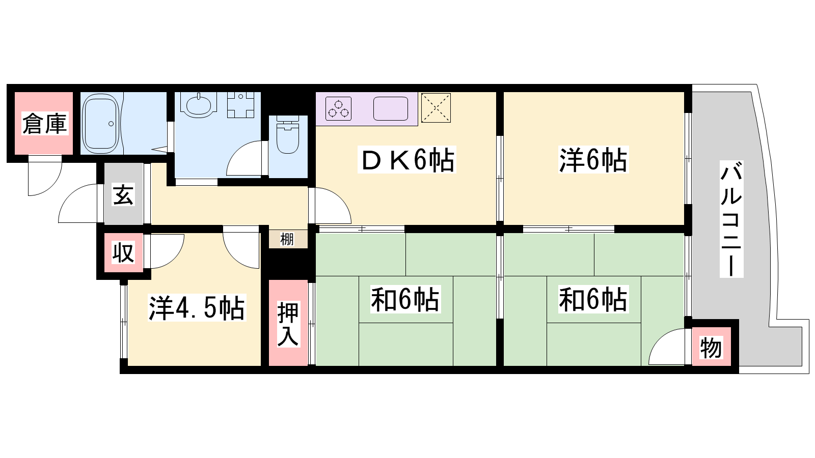- DK6帖、洋室6帖、洋室4.5帖、和室6帖、和室6帖