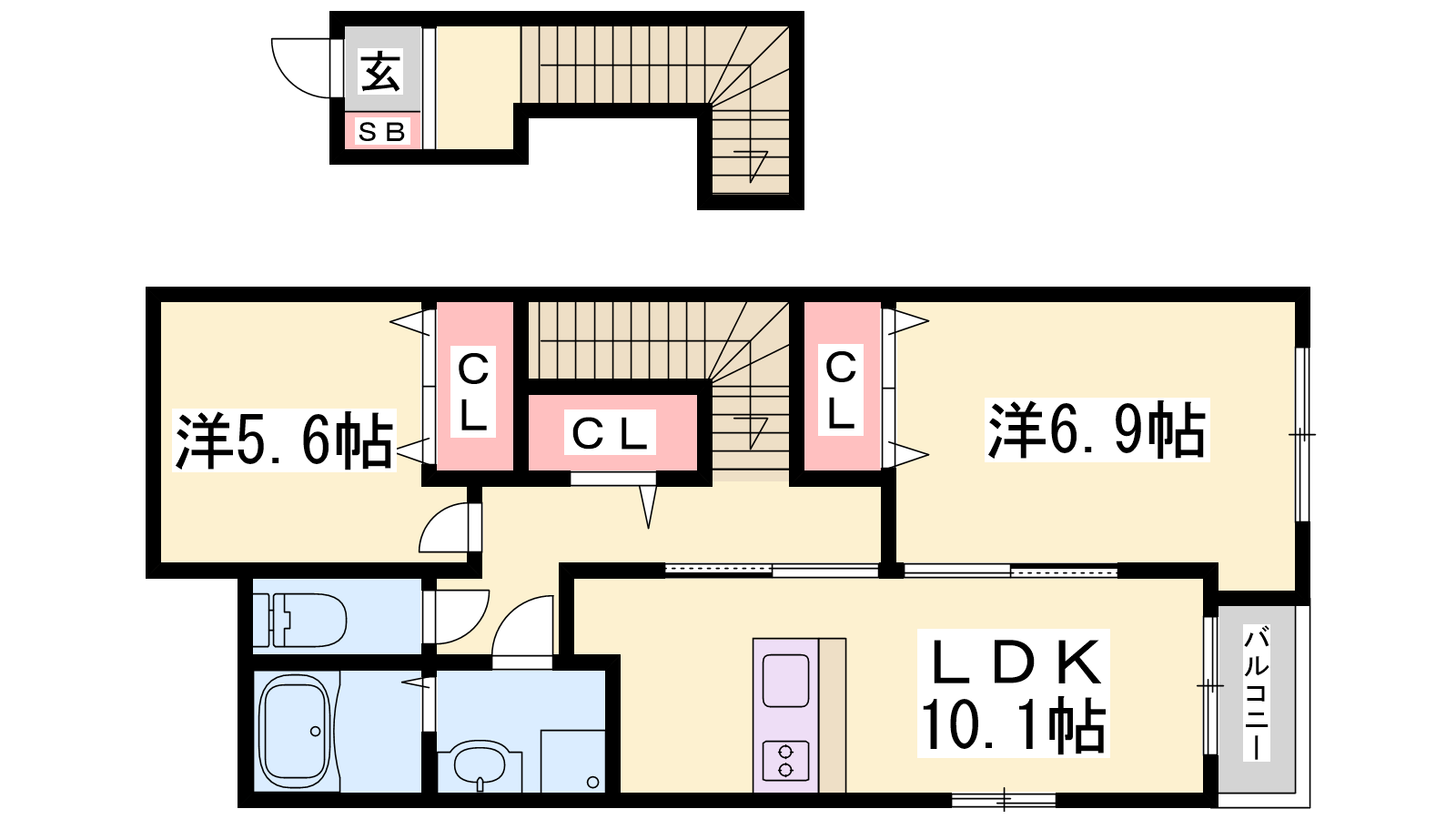 - LDK10.1帖、洋室6.9帖、洋室5.9帖