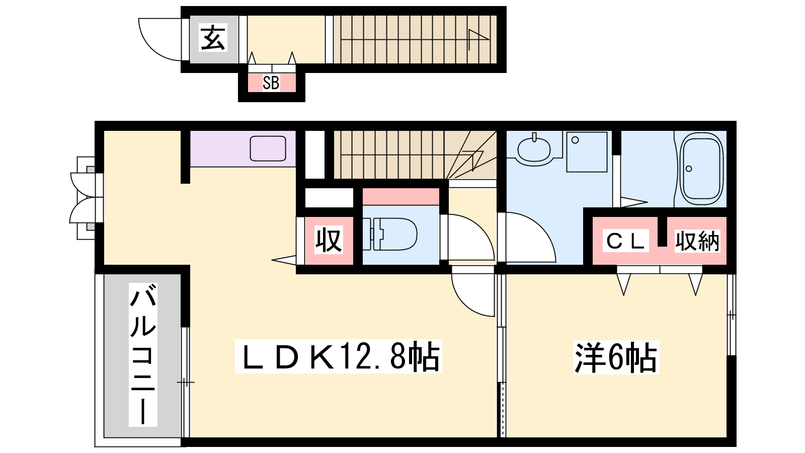 - LDK12.8帖、洋室6帖