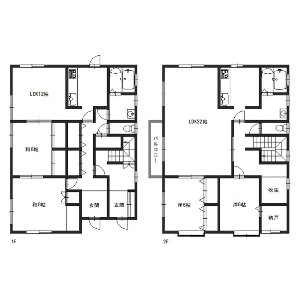 - 和室6帖、和室8帖、LDK22帖