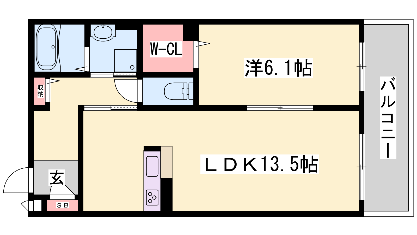- LDK13.8帖、洋室6.1帖