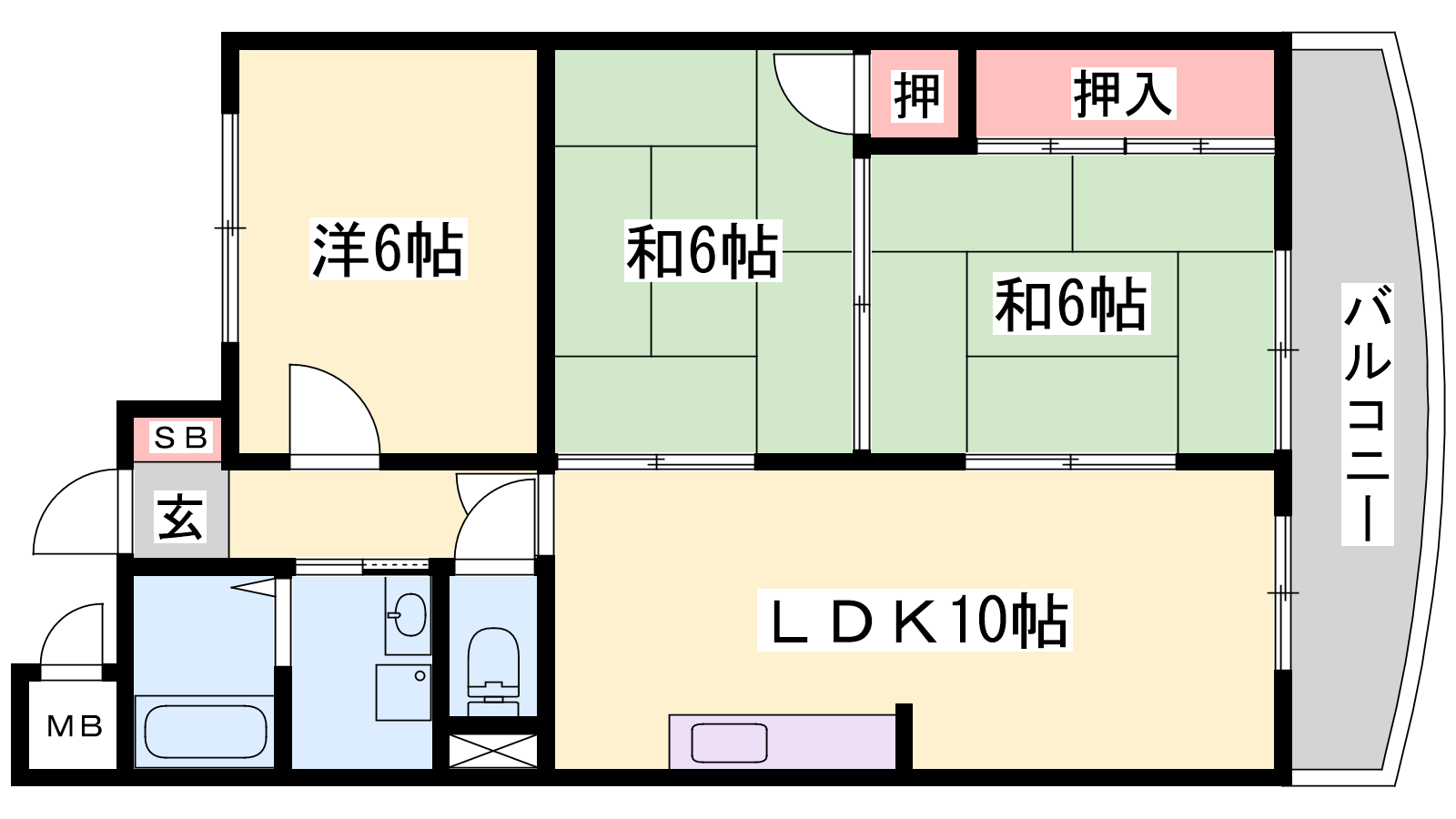 - LDK10帖、洋室6帖、和室6帖、和室6帖