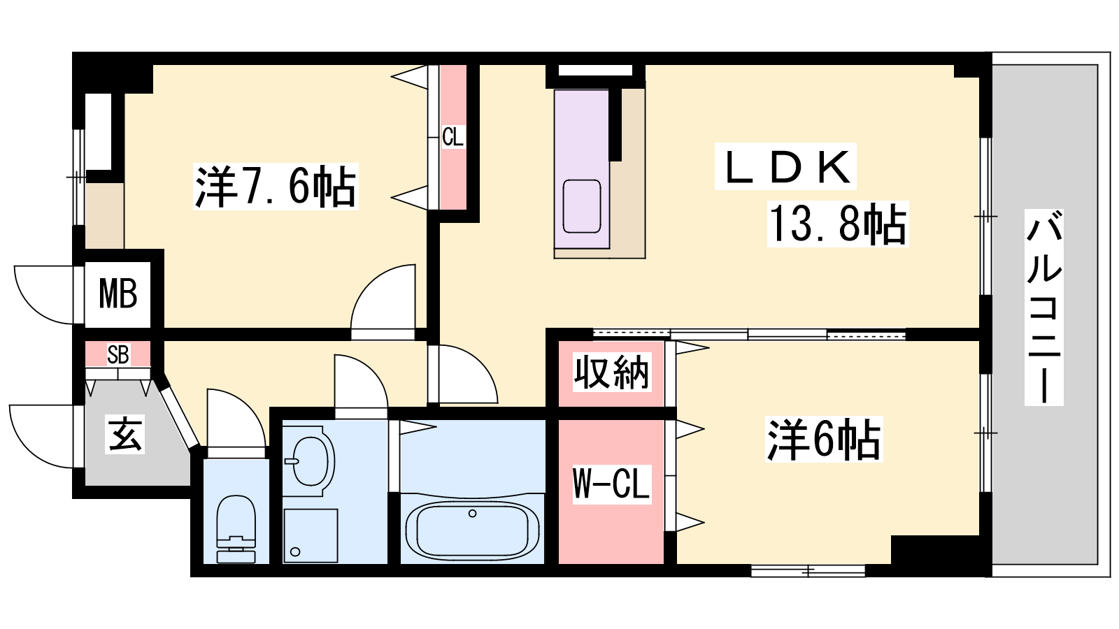 - LDK13.8帖、洋室6帖、洋室7.6帖