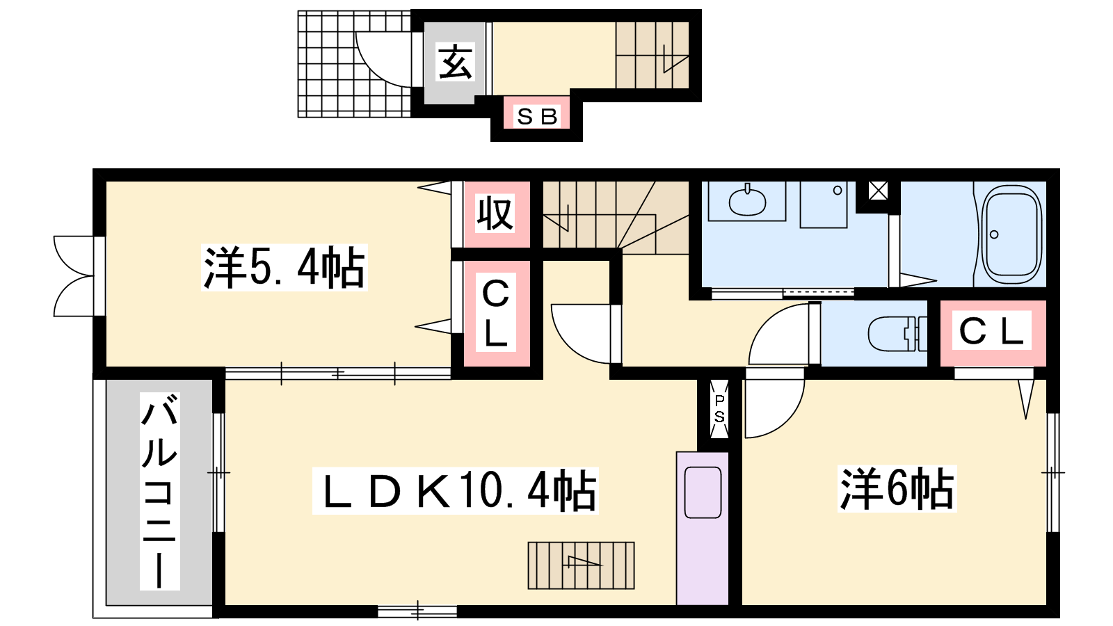 - LDK10.4帖、洋室6帖、洋室5.4帖