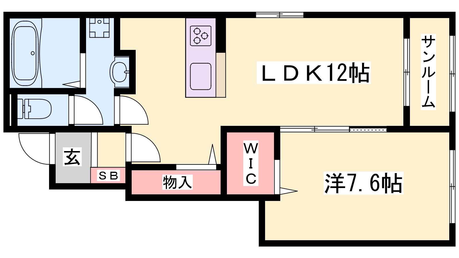 - LDK12帖、洋室7.6帖