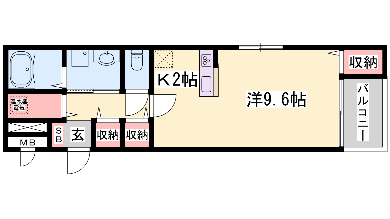 - DK2帖、洋室9.6帖