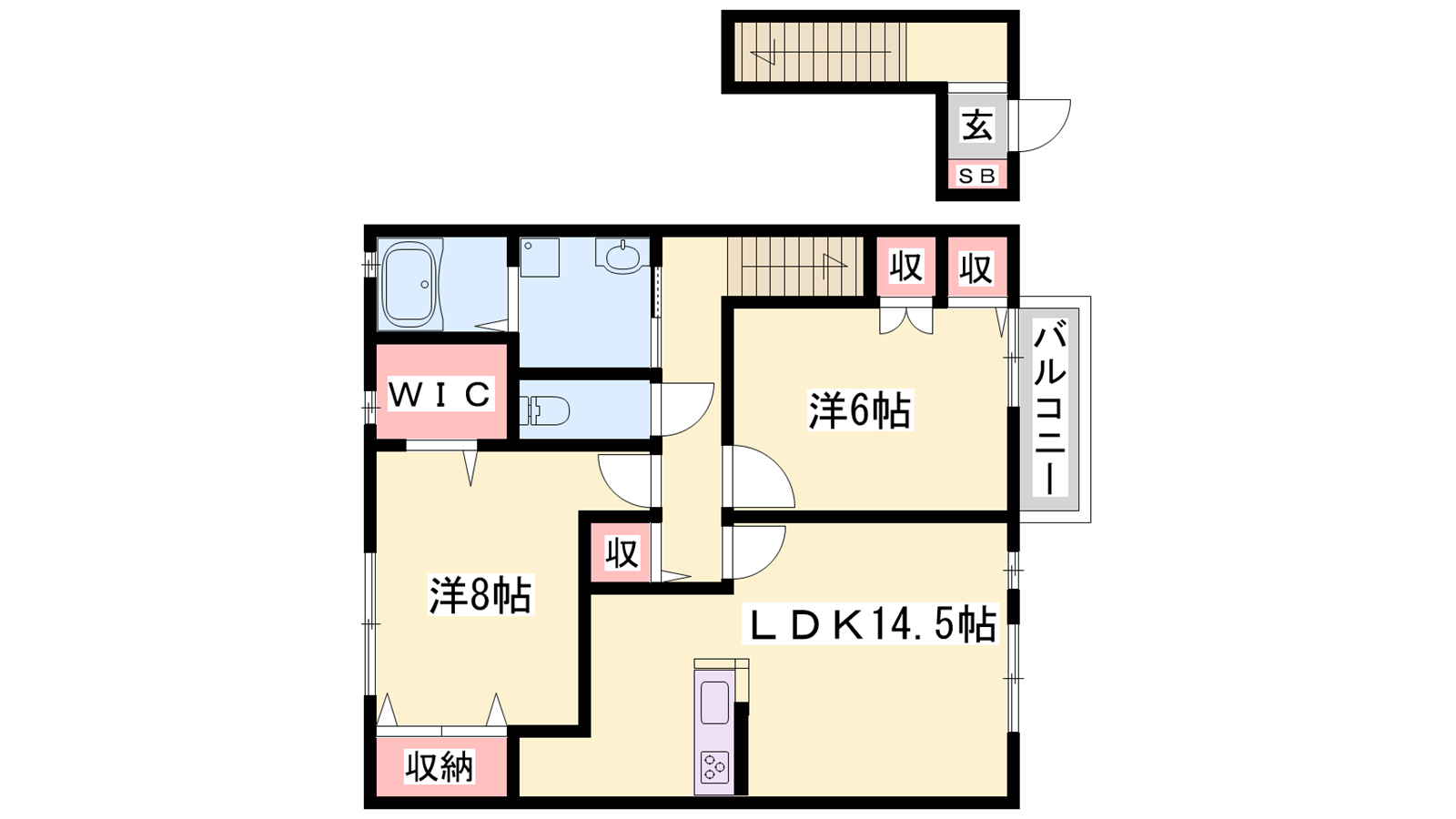 - LDK14.5帖、洋室8帖、洋室6帖