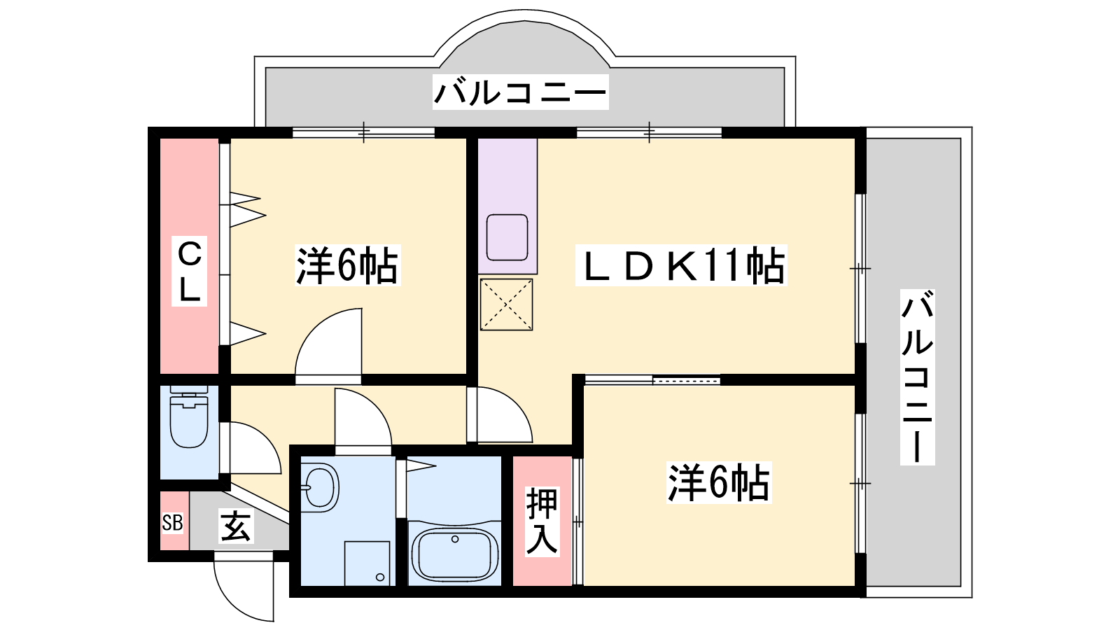- LDK11帖、洋室6帖、和室6帖