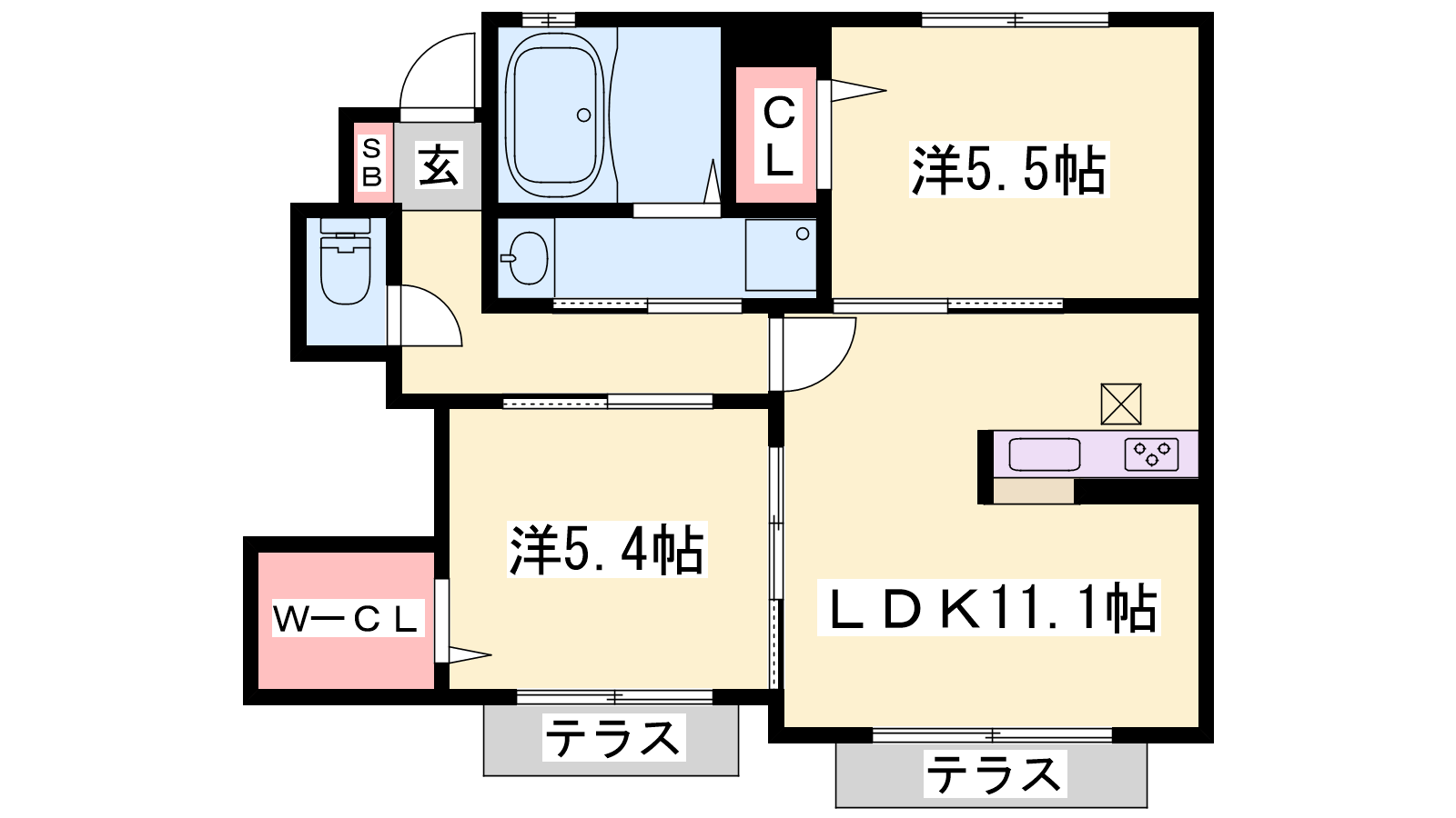 - LDK11.1帖、洋室5.5帖、洋室5.4帖