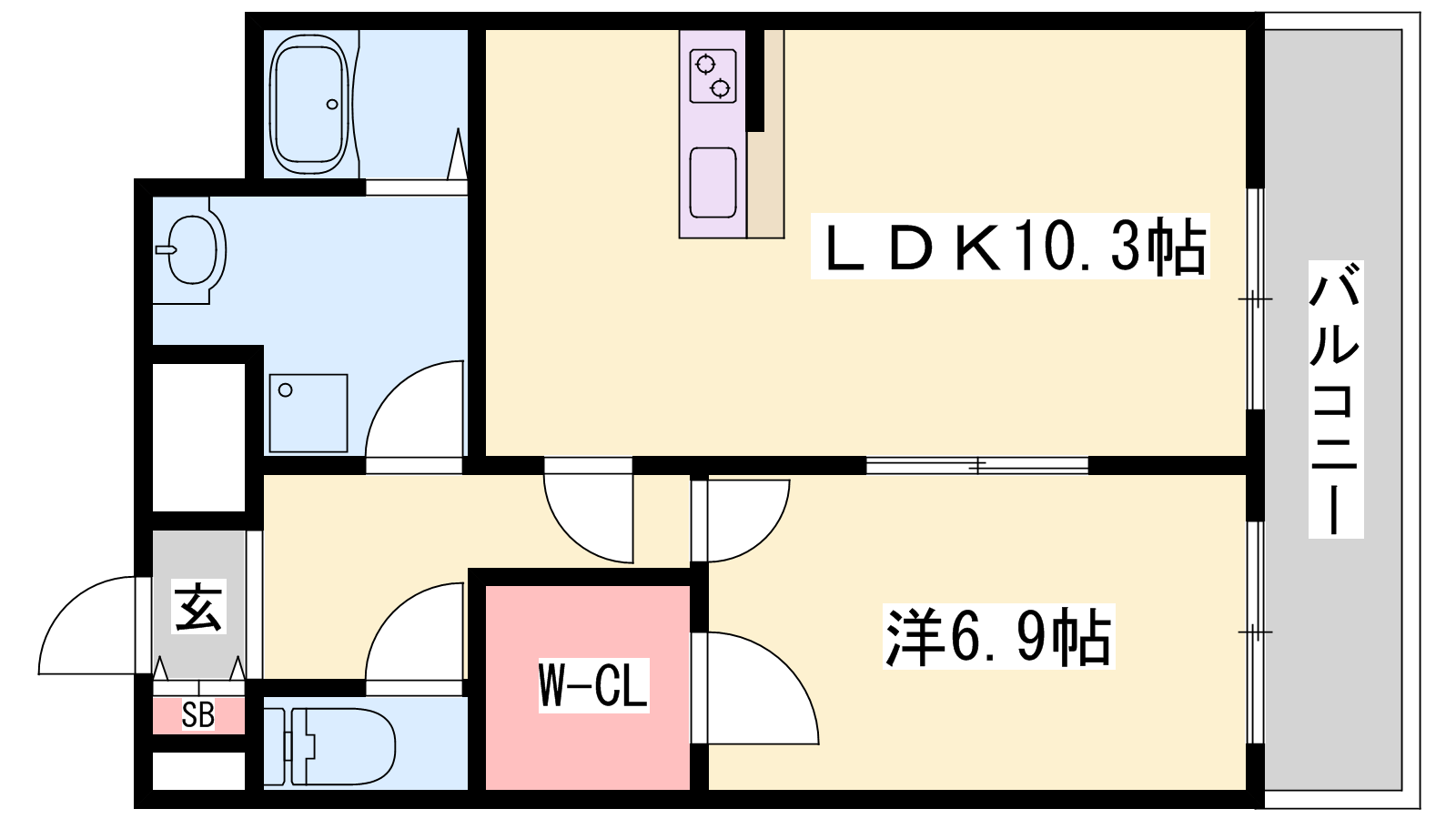 - LDK10.3帖、洋室6.9帖