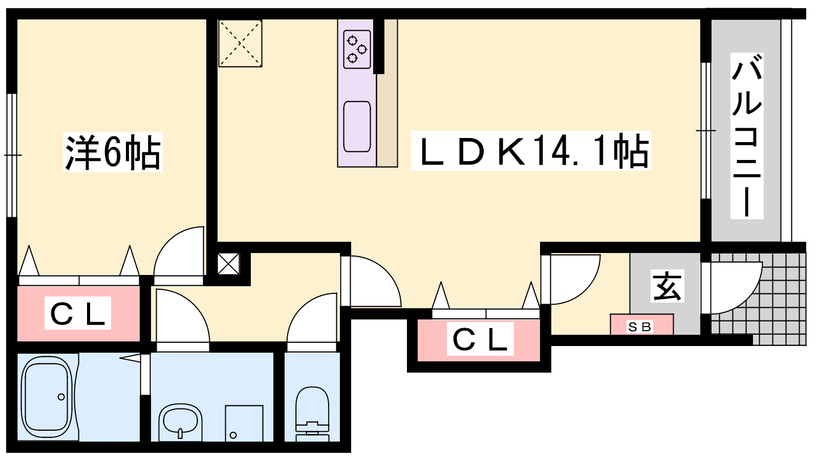 - LDK14.3帖、洋室6帖