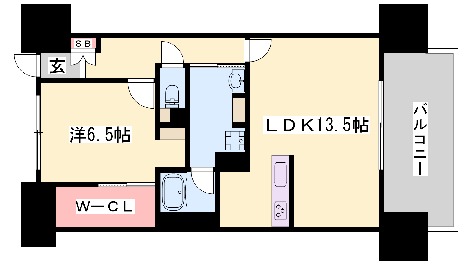 - LDK13.5帖、洋室6.5帖