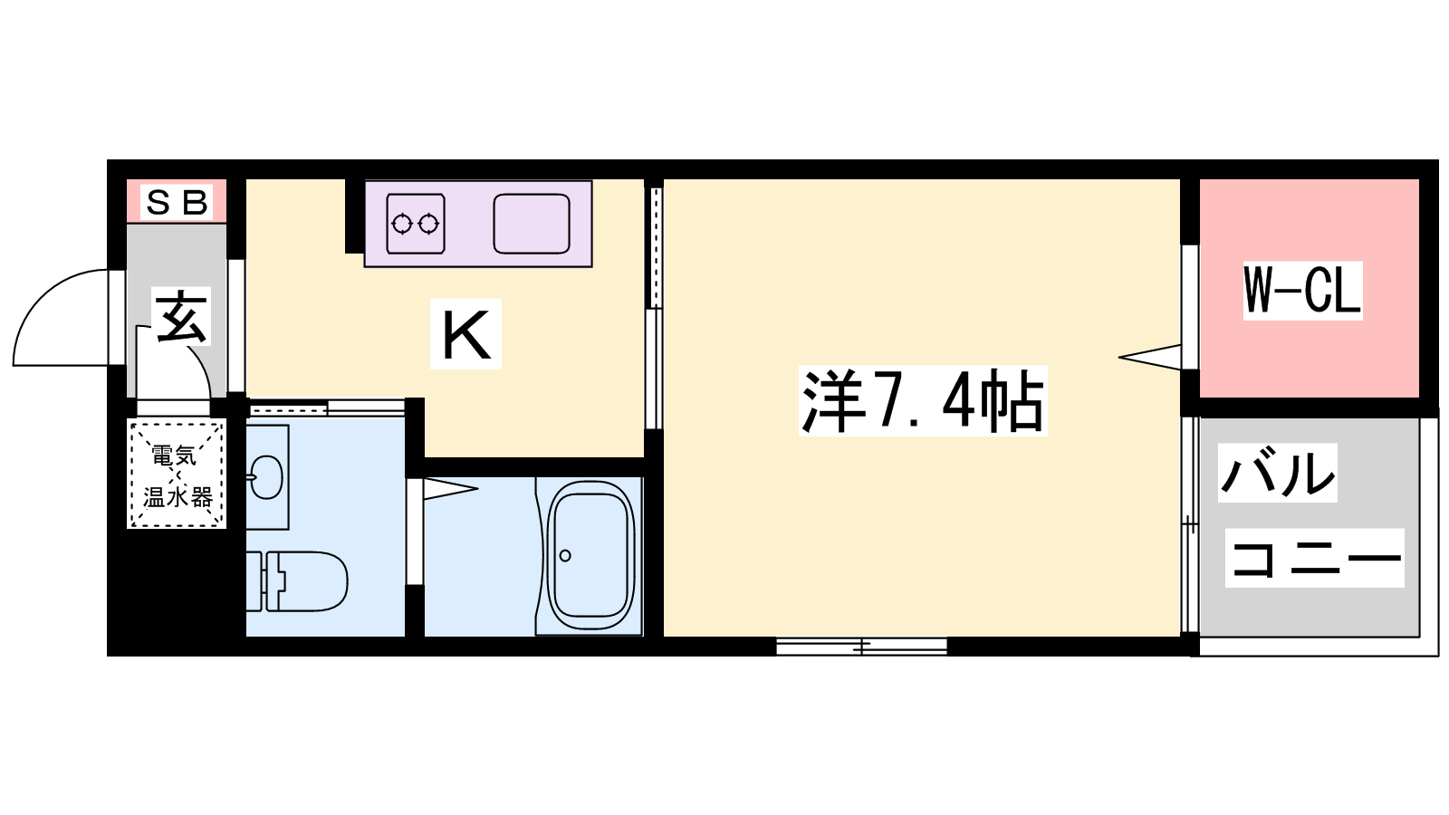 - K2.3帖、洋室7.4帖