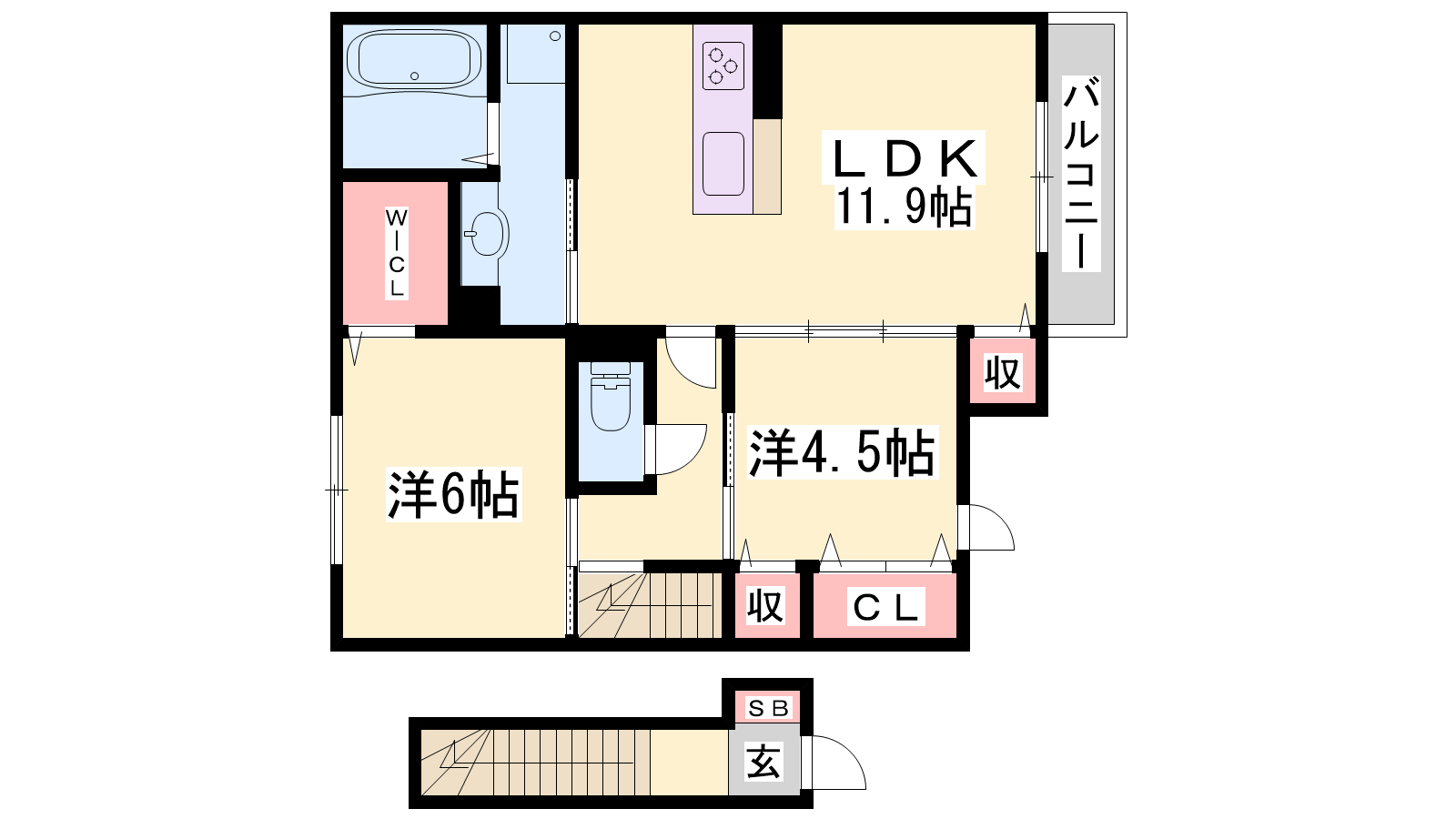 - LDK11.9帖、洋室6帖、洋室4.5帖