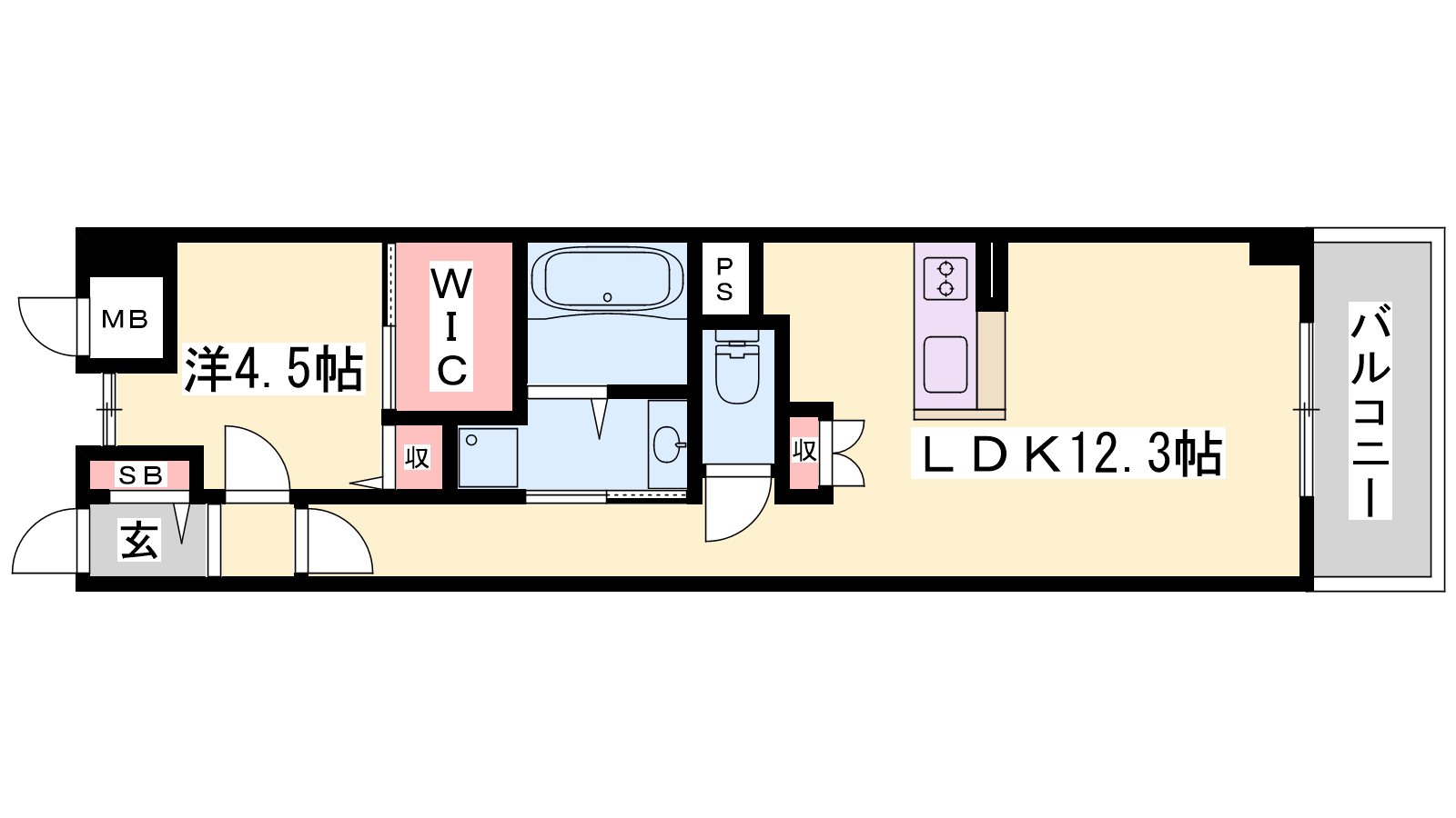 - LDK12.3帖、洋室4.5帖