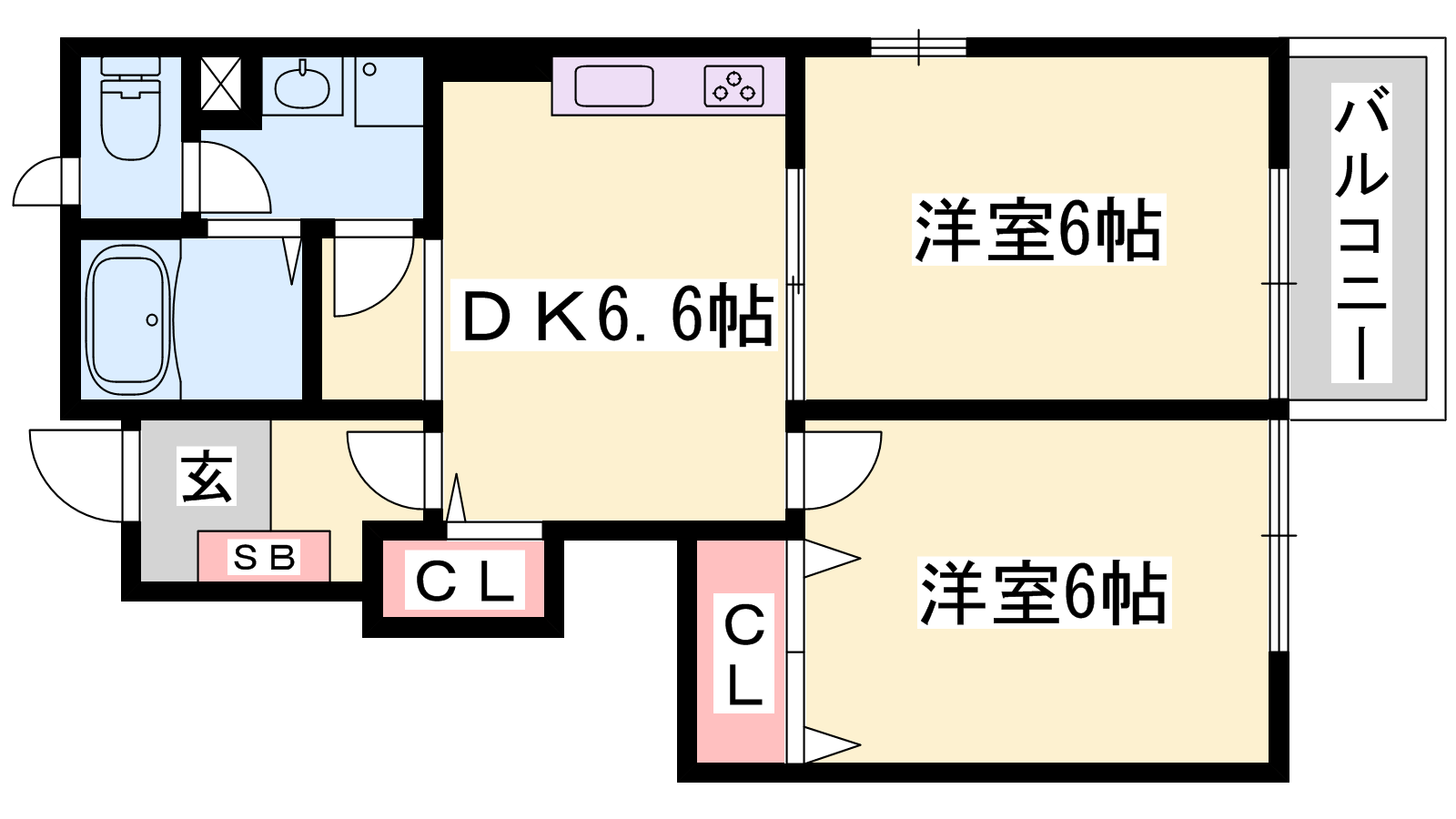 - DK6.6帖、洋室6帖、洋室6帖