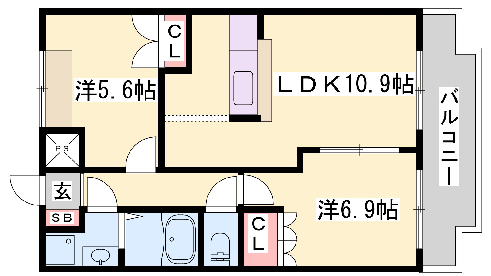- LDK10.9帖、洋室6.9帖、洋室5.6帖