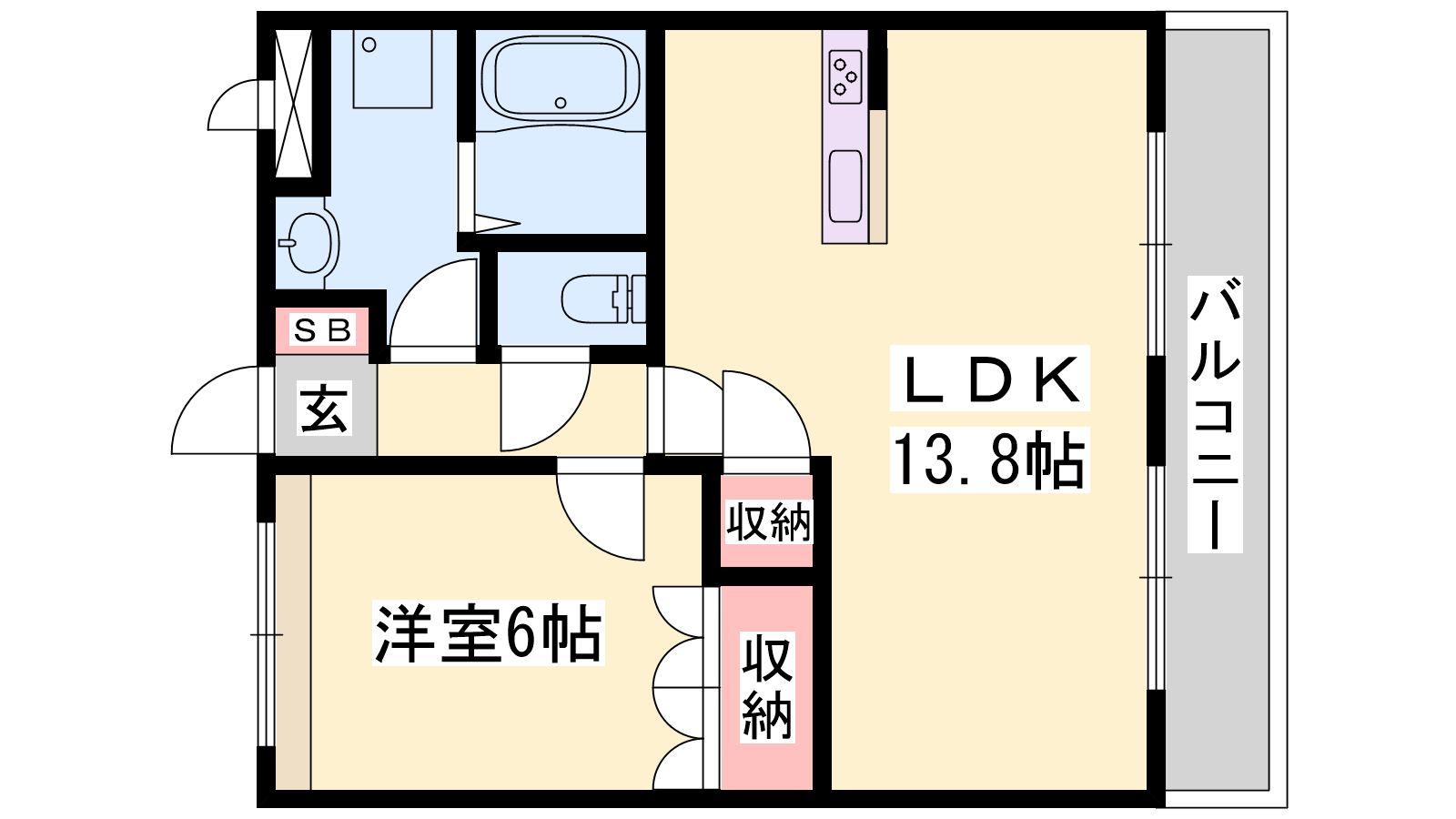- K13.8帖、洋室6帖