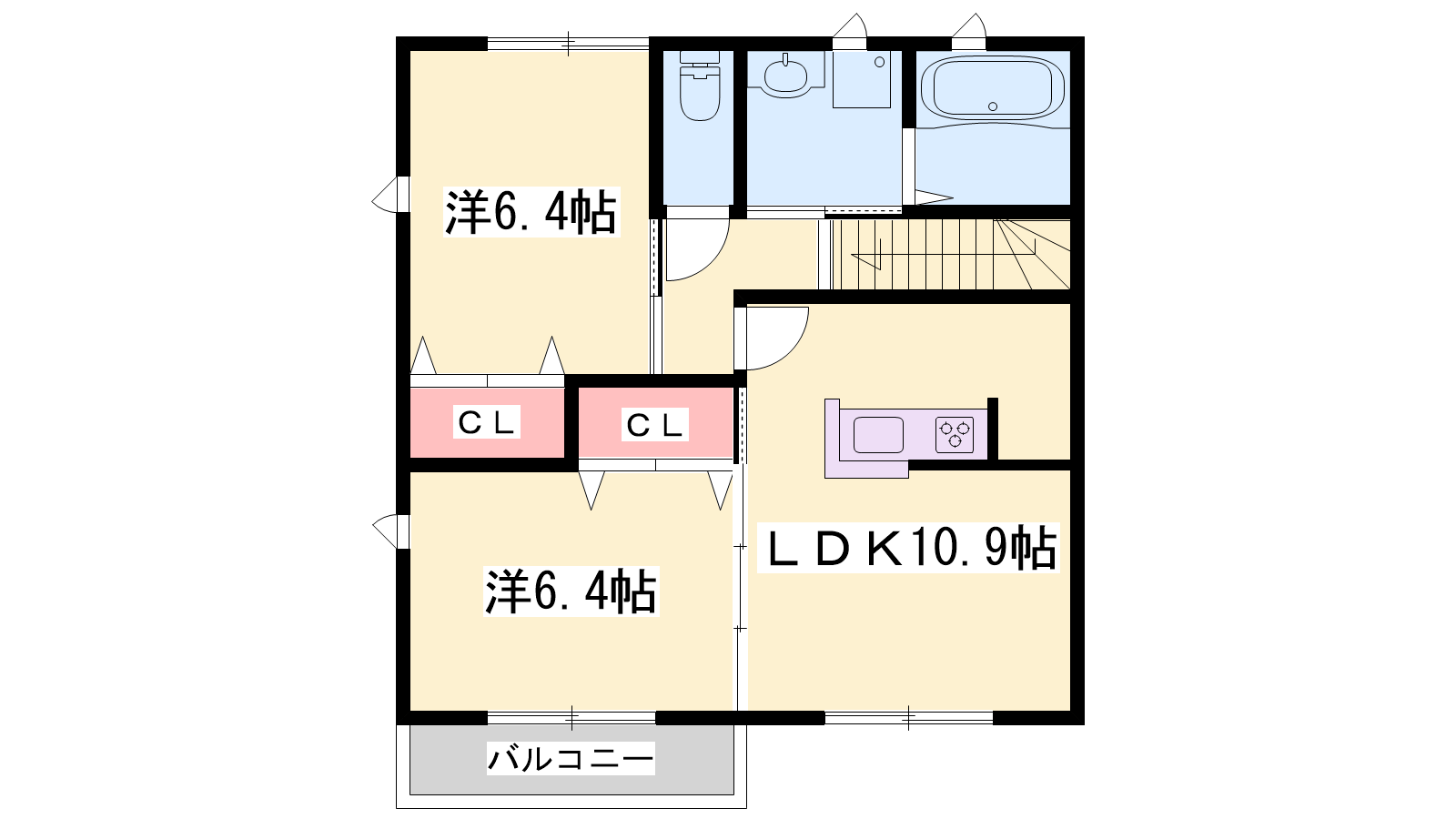- LDK10.9帖、洋室6.4帖、洋室6.4帖