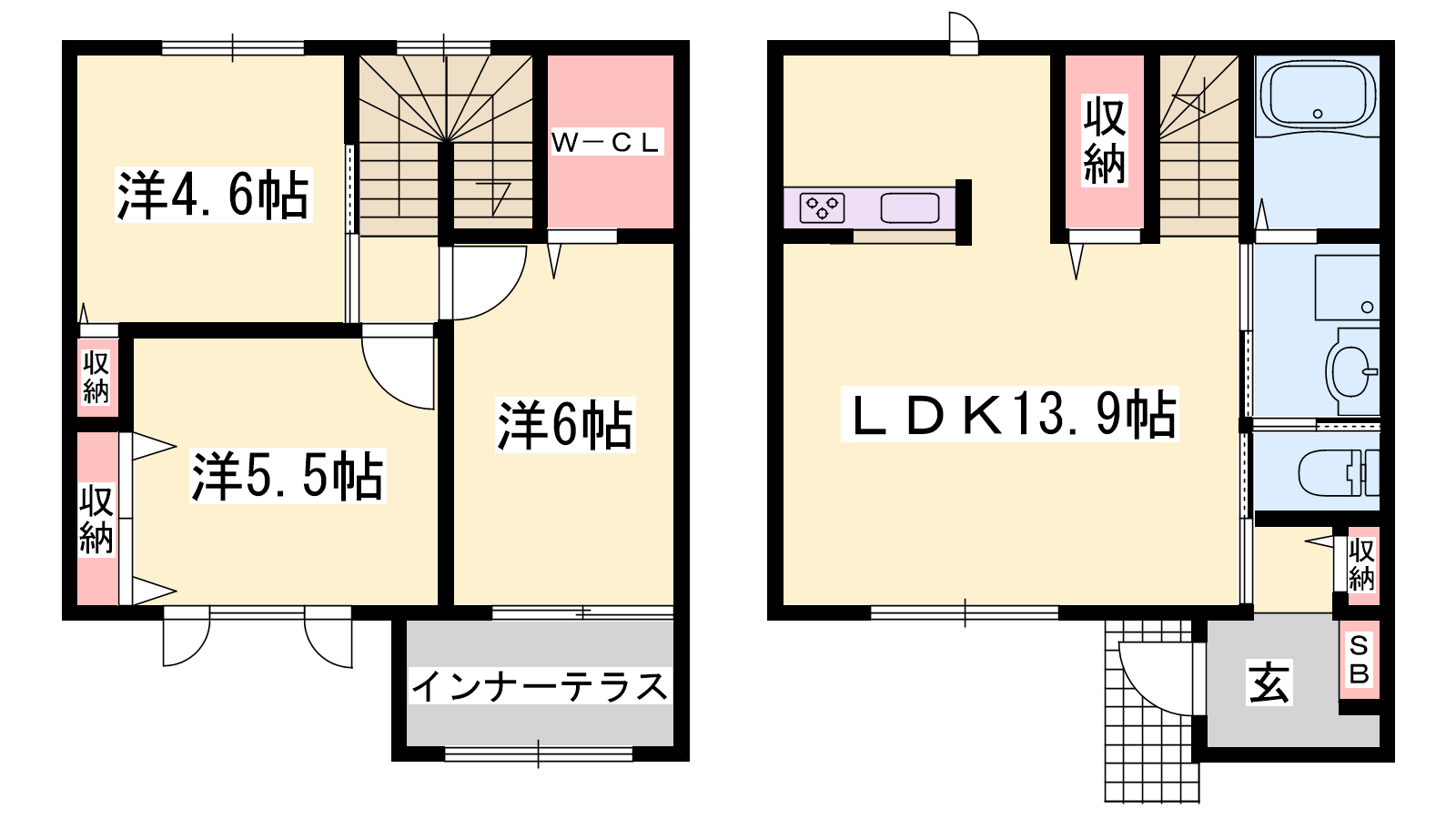 - LDK13.9帖、洋室5.5帖、洋室6帖、洋室4.6帖