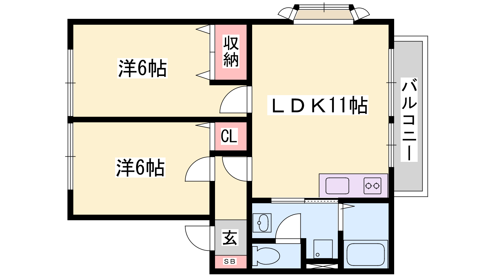 - LDK11帖、洋室6帖、洋室6帖