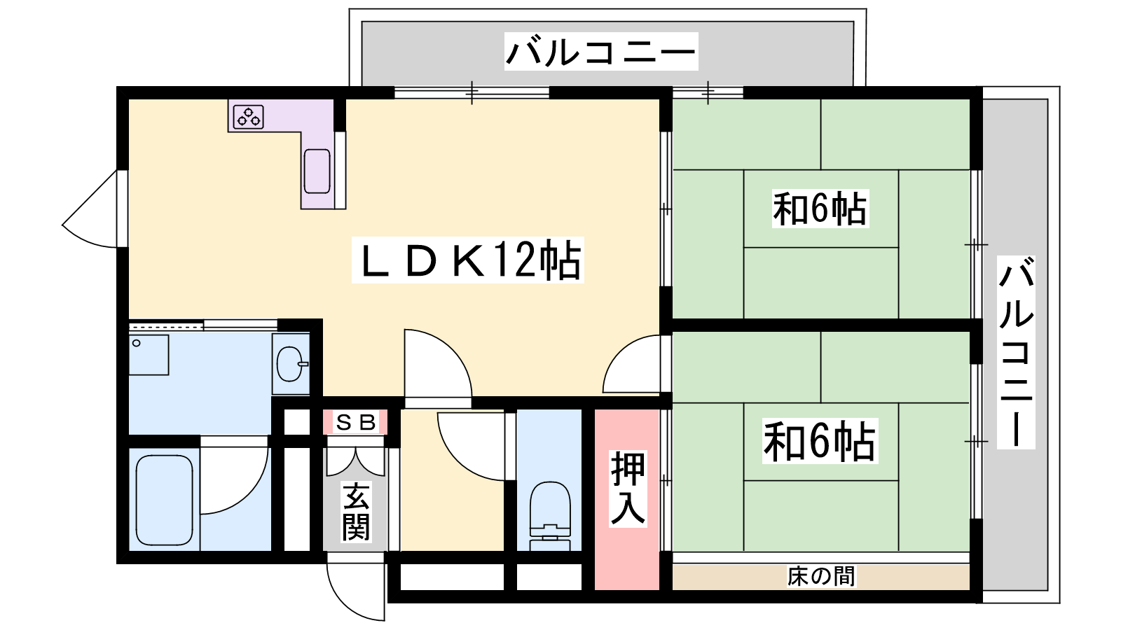 - LDK12帖、和室6帖、和室6帖