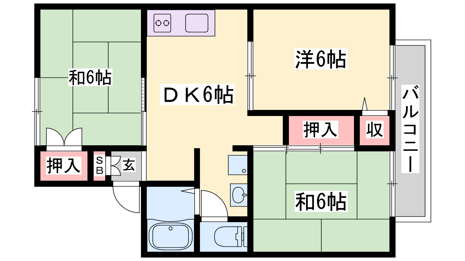- DK6帖、洋室6帖、和室6帖、和室6帖