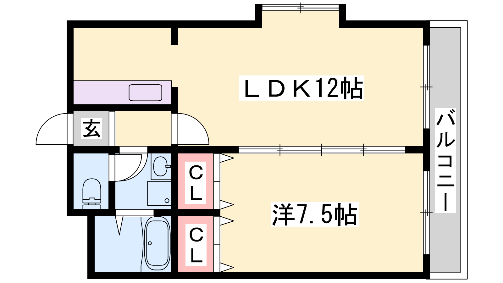 - LDK12帖、洋室7.5帖
