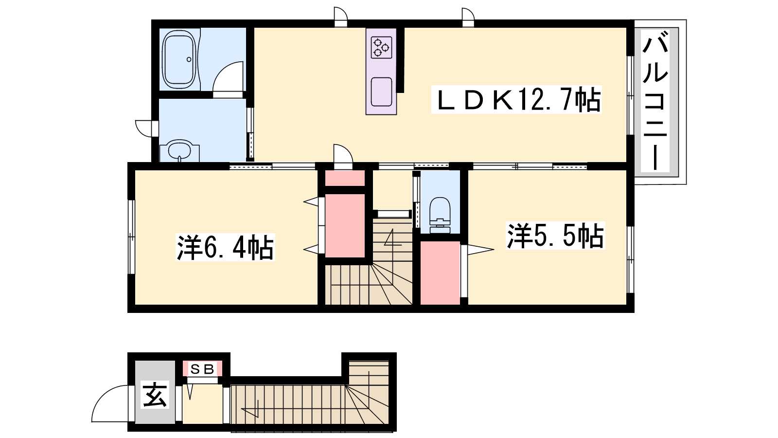 - LDK12.7帖、洋室6.4帖、洋室5.5帖