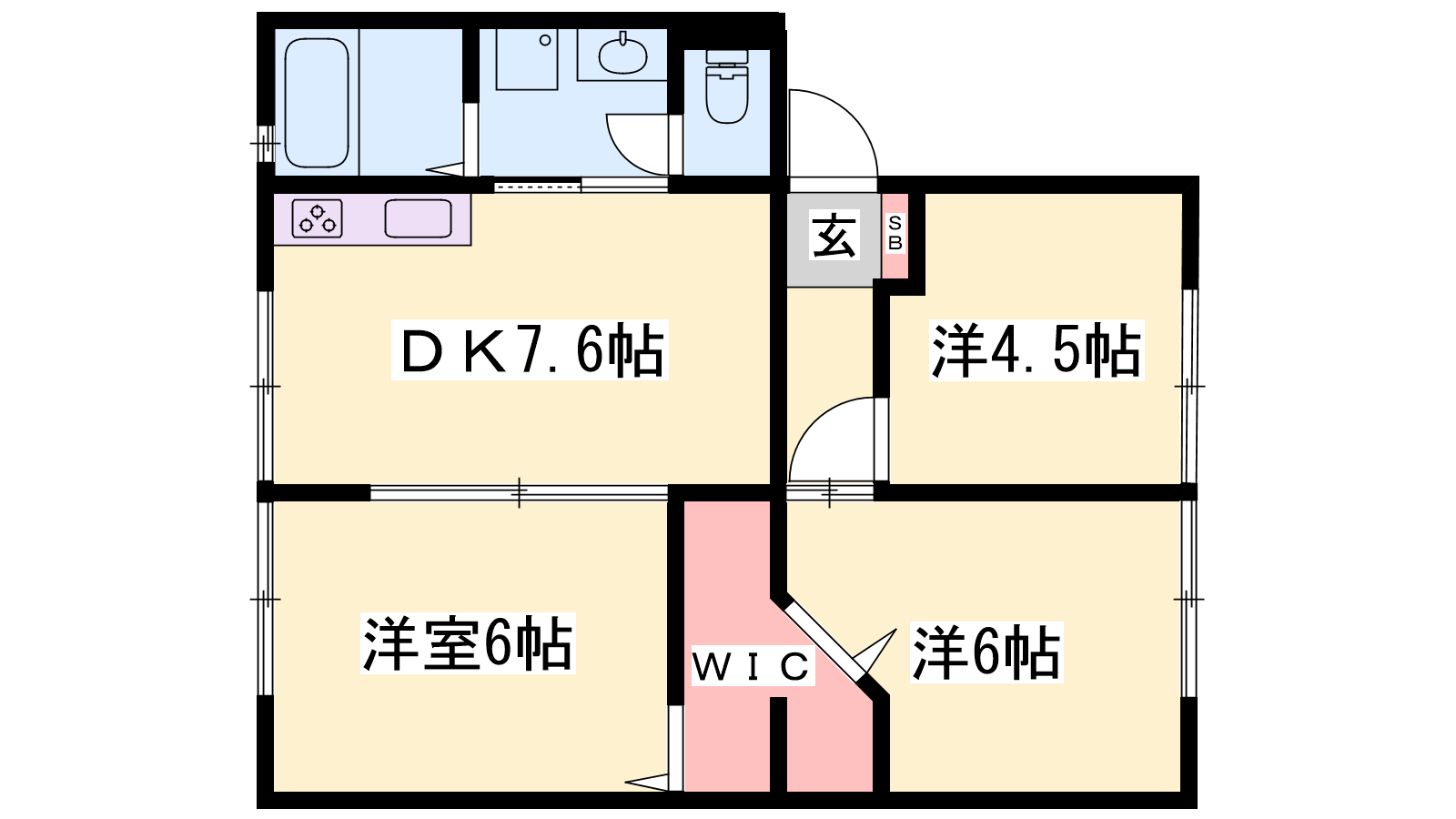 - DK7.6帖、洋室6帖、洋室4.5帖、和室6帖