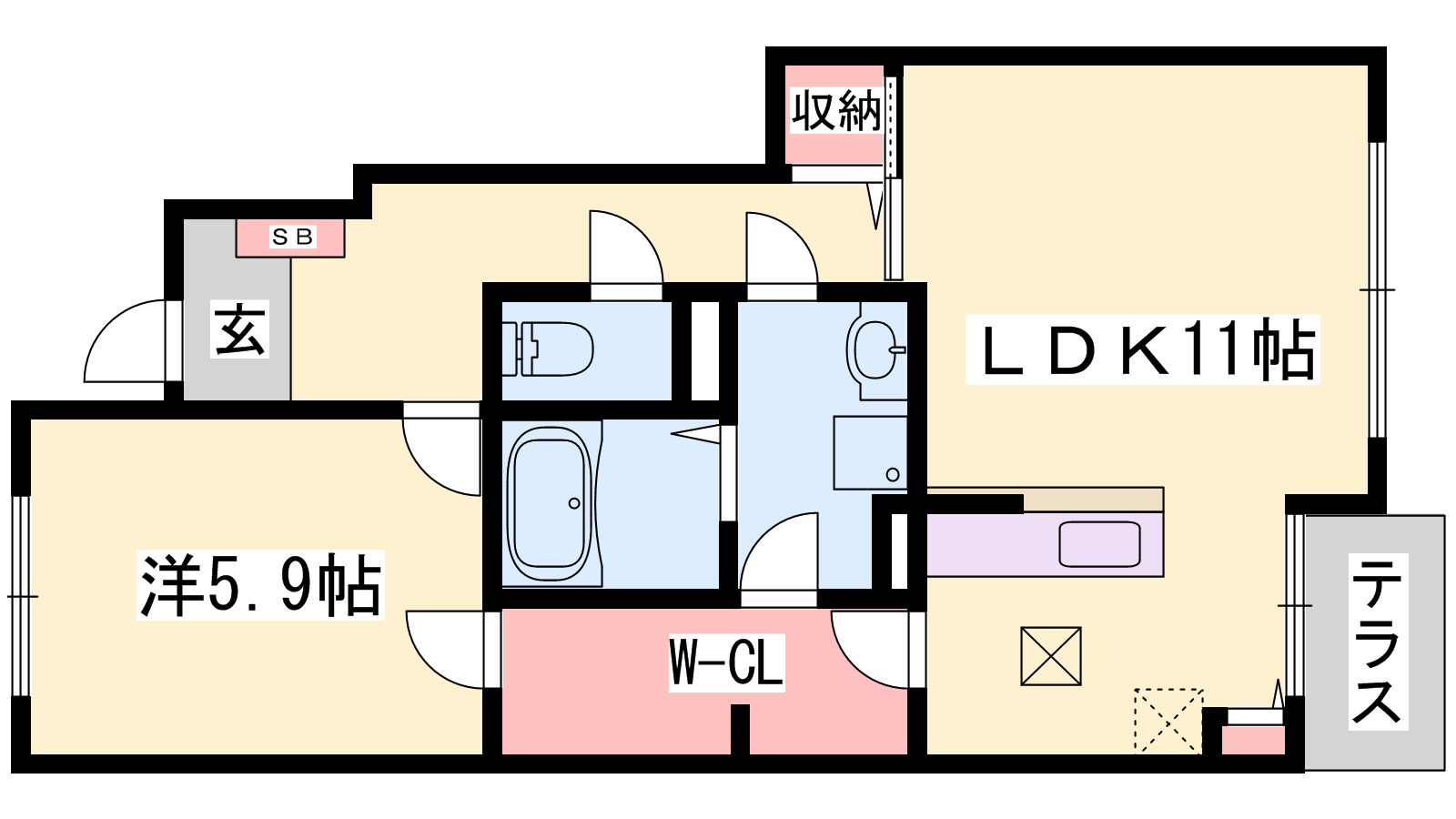 - LDK11帖、洋室5.9帖