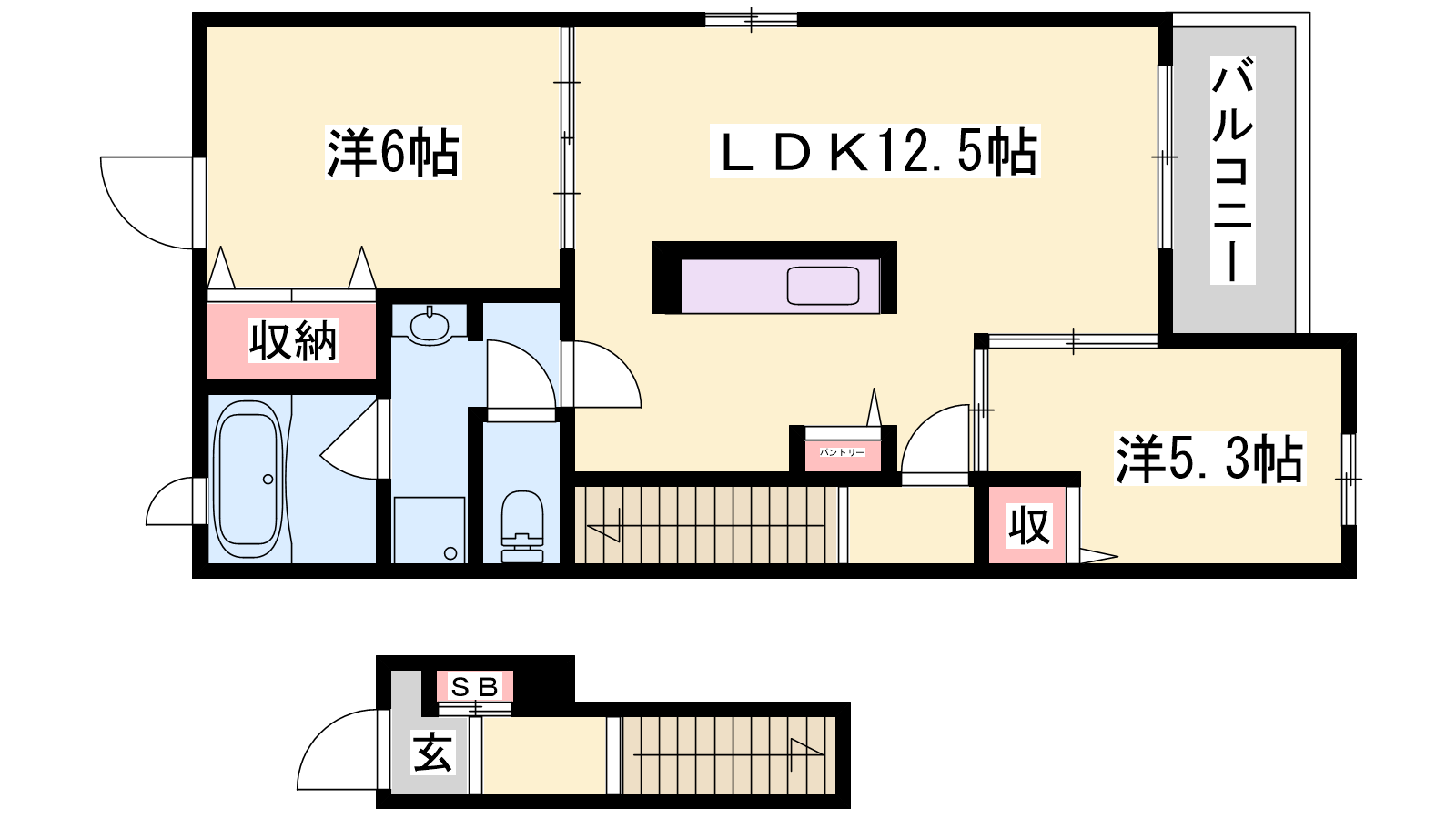 - LDK12.5帖、洋室6帖、洋室5.3帖