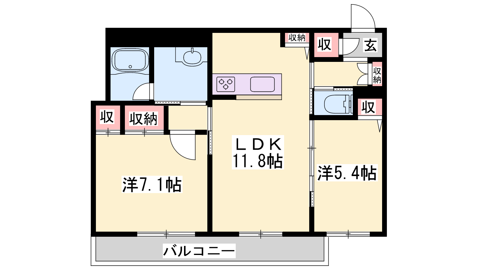 - LDK11.8帖、洋室7.1帖、洋室5.4帖