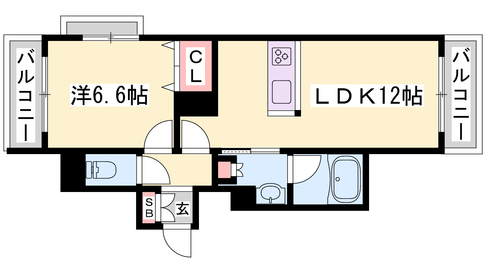- LDK12帖、洋室6.6帖