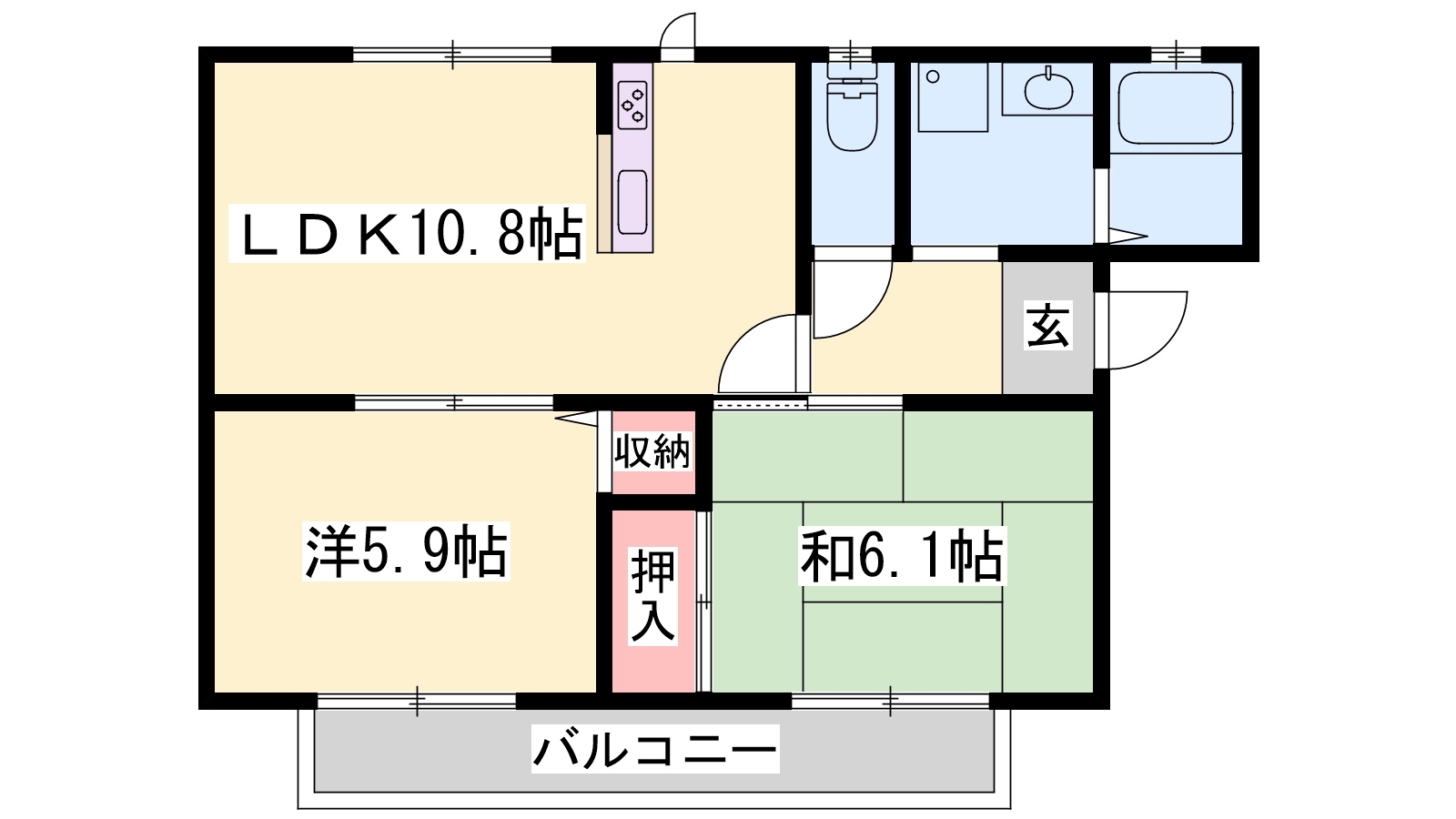 - LDK10.8帖、洋室6.1帖、和室5.9帖