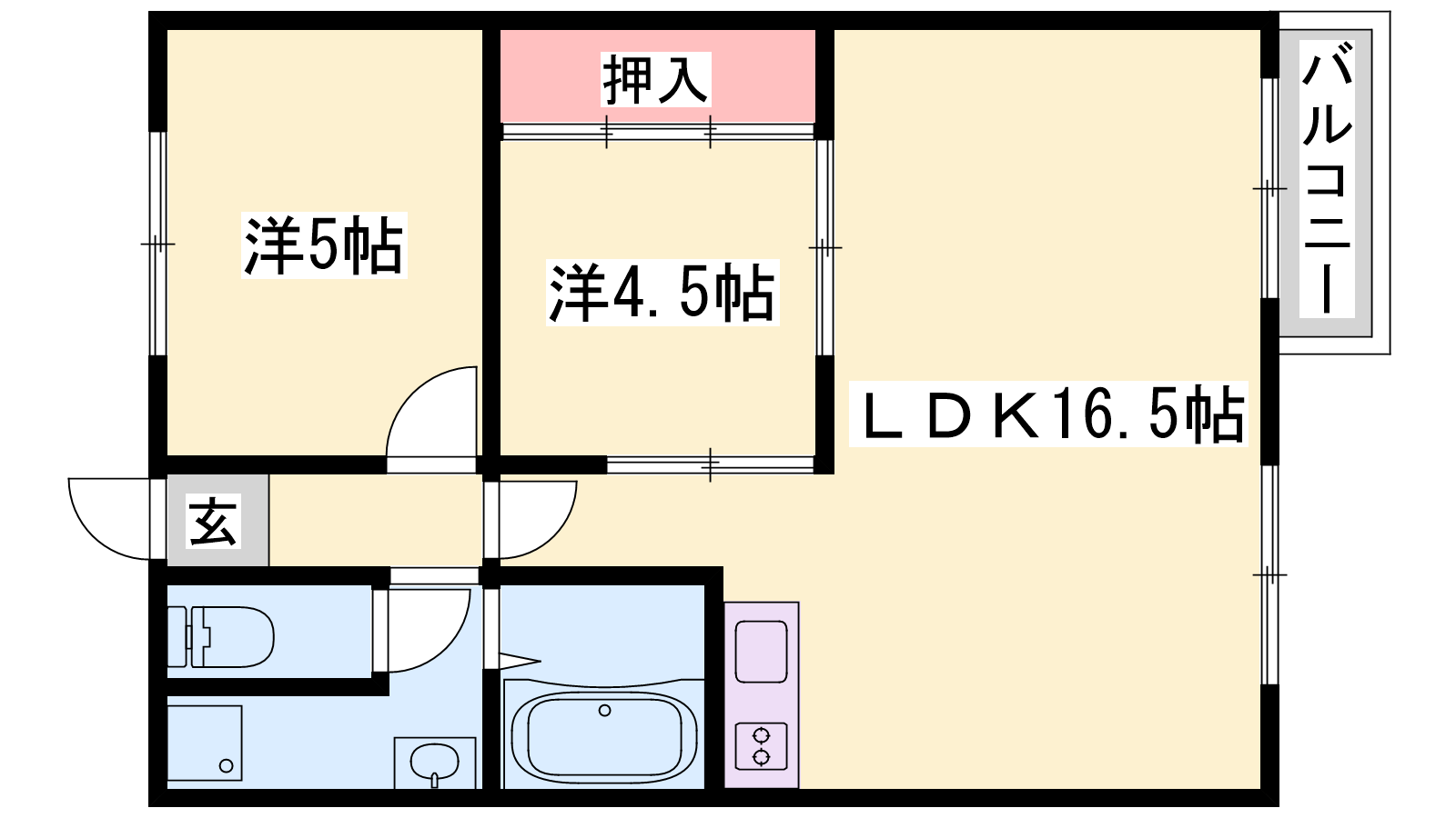 - LDK16.5帖、洋室5帖、洋室4.5帖