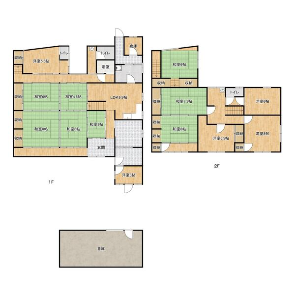 - DK9.5帖、洋室4帖、洋室6帖、和室8帖、洋室6帖、和室6帖、和室7.5帖、和室6帖、洋室8帖、洋室6帖