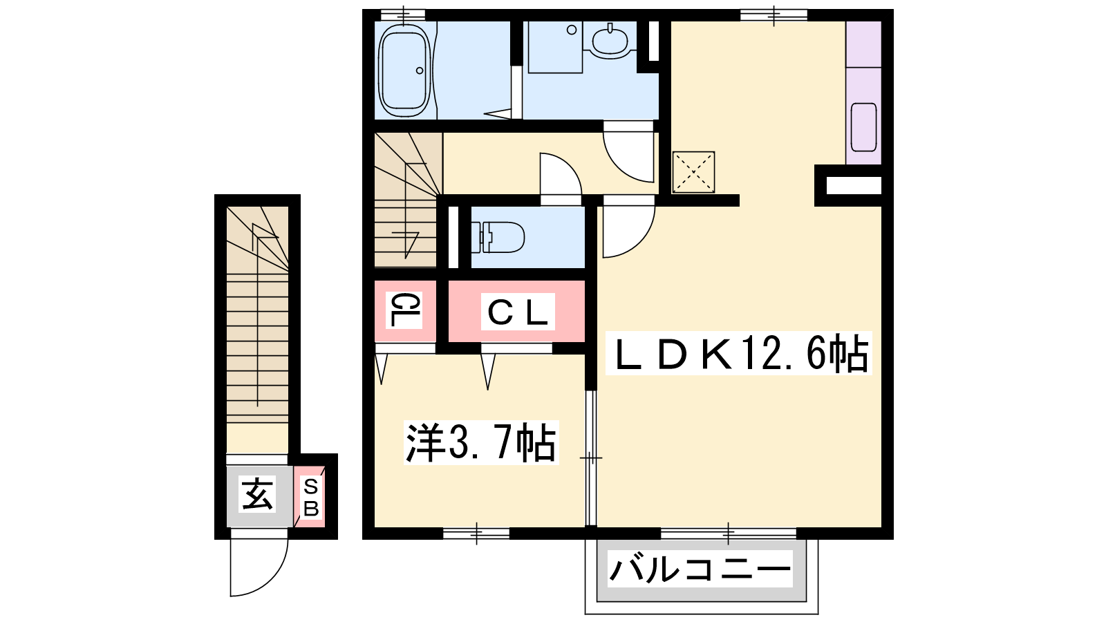 - LDK12.6帖、洋室3.7帖